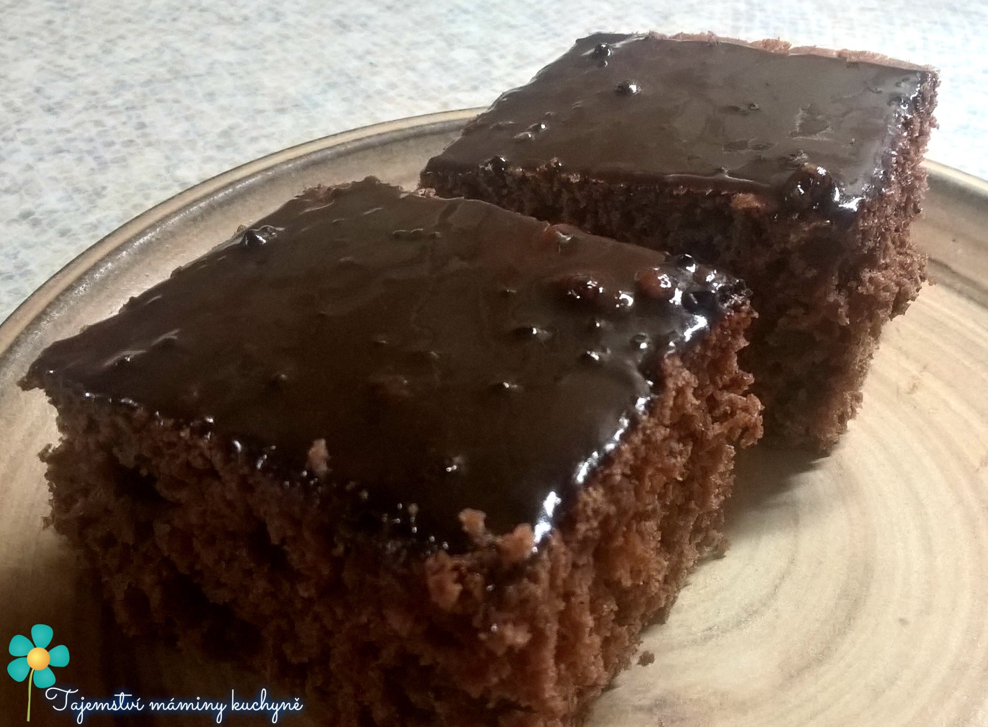 Zatímco perník chladne, připravte si čokoládovou polevu.V kastrůlku rozehřejte máslo, na malém plameni v něm dohladka rozmíchejte cukr, kakao a mléko s pudinkovým práškem. Hotovou polevou potřete vychladlý perník, zoubkovaným nožem vytvořte ozdobné vlnky a nechte v chladu ztuhnout.